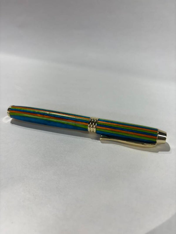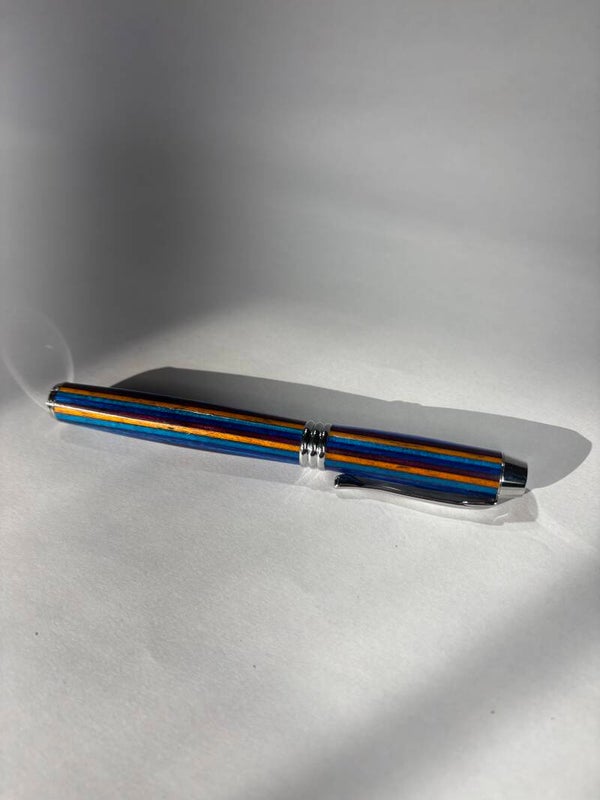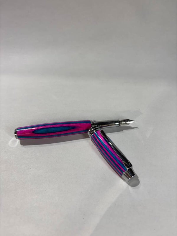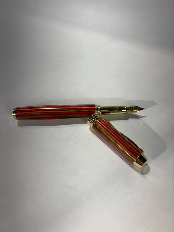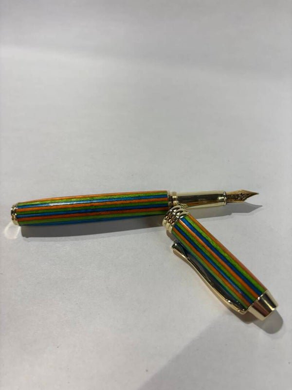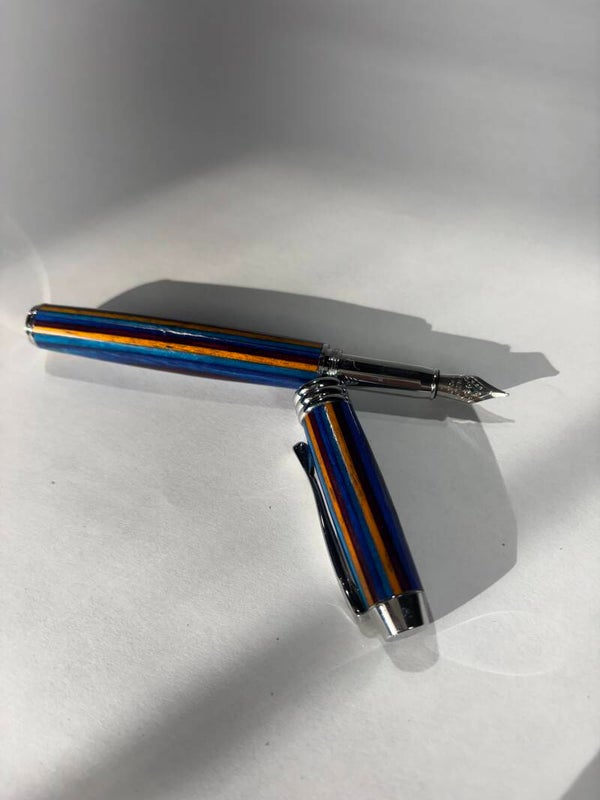 Each pen is individually handmade, showcasing a stunning layered design that highlights rich, vibrant colors and natural variations. No two pens are exactly alike, giving you a truly one-of-a-kind writing instrument. The smooth, balanced body fits comfortably in your hand, while the precision fountain nib delivers a fluid, effortless writing experience that turns every signature into a statement.